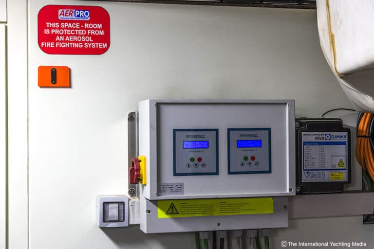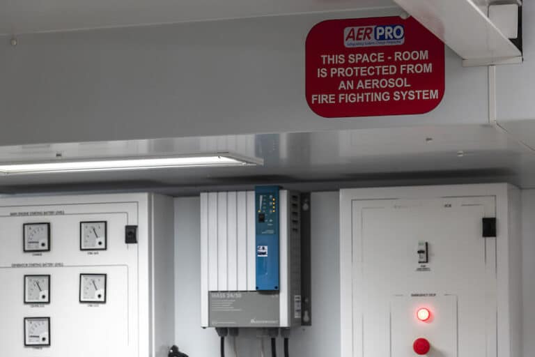 AerPro Marine est un système d’extinction à aérosol qui utilise des sels de potassium condensés et qui peut être monté à la place du système anti-incendie traditionnel.