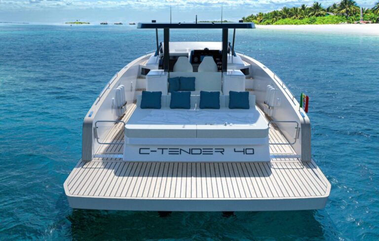 ” Le nouveau C-Tender 40 est notre nouveau fleuron de la gamme C-Tender, le plus petit des modèles en production aura un nouveau look: la propulsion inbord-horsbord “, rapporte Mauro Corvisieri, fondateur de la société C-Boat, avec son associé Daniele Maschio. “La caractéristique la plus importante de notre chantier réside dans son caractère artisanal: tout propriétaire pourra réaliser avec nous le bateau de ses rêves, en le personnalisant complètement, créant ainsi un bateau unique en termes de couleurs, d’intérieurs, de détails, d’accessoires et de tissus. La personnalisation totale est ce qui nous rend différents et rend nos bateaux différents, qui sont pleinement réalisés selon les souhaits de chaque propriétaire.”
