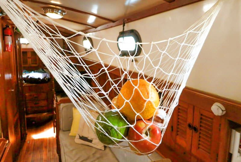 On peut aussi faire un plan du rangement des victuailles à ajouter à celui de l’équipement de sécurité, utile pour vérifier l’état des réservoirs de gaz!