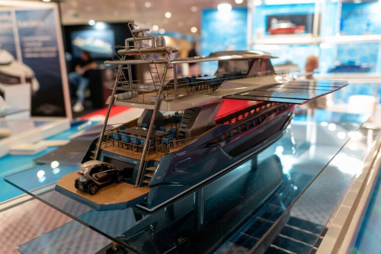 Lors du Cannes Yachting Festival, nous avons eu l’occasion de converser avec l’ingénieur Maurizio Fabiani, qui nous a expliqué certains des détails qui, selon nous, rendent ses yachts vraiment uniques. De la plume de l’ingénieur sont nées deux lignes de superyachts qui se distinguent par le type de propulsion, classique et hybride, et qui sont à leur tour disponibles dans les longueurs 70, 77, 100 et 101. Sur le stand de Fabiani au Palais des Festivals, des modèles, tous extrêmement bien réalisés, ont réussi à attirer l’attention de nombreux visiteurs, dont la plupart ont été étonnés par un projet si futuriste.