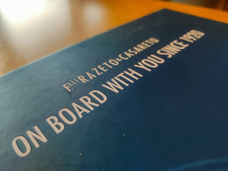 “On Board with you since 1920”, tel est le titre du livre, retrace les pas de l’entreprise à rebours dans une sorte de flash-back cinématographique, en passant par les grands changements d’époque qui ont eu lieu en Italie en cent ans d’histoire. Textes et images recomposent le fil logique et chronologique d’aujourd’hui, à la naissance de l’entreprise en 1920 à Sori, sur la Riviera Ligure di Levante. Les premières poignées, serrures et patères pour les navires génois commencent à être produites dans un petit local. Au fil du temps, l’entreprise augmente à la fois sa charge de travail et l’agrandissement de l’usine où sont produits tous les objets en laiton destinés à être fournis aux différents bateaux de la région et au-delà, étendant ses frontières à l’étranger dès les années 1930. Aujourd’hui, F.lli Razeto & Casareto est l’une des principales entreprises du secteur des accessoires nautiques. Grâce à la qualité et à l’originalité de ses produits, elle a conquis tous les continents et réalise un chiffre d’affaires de 50% avec le marché étranger.