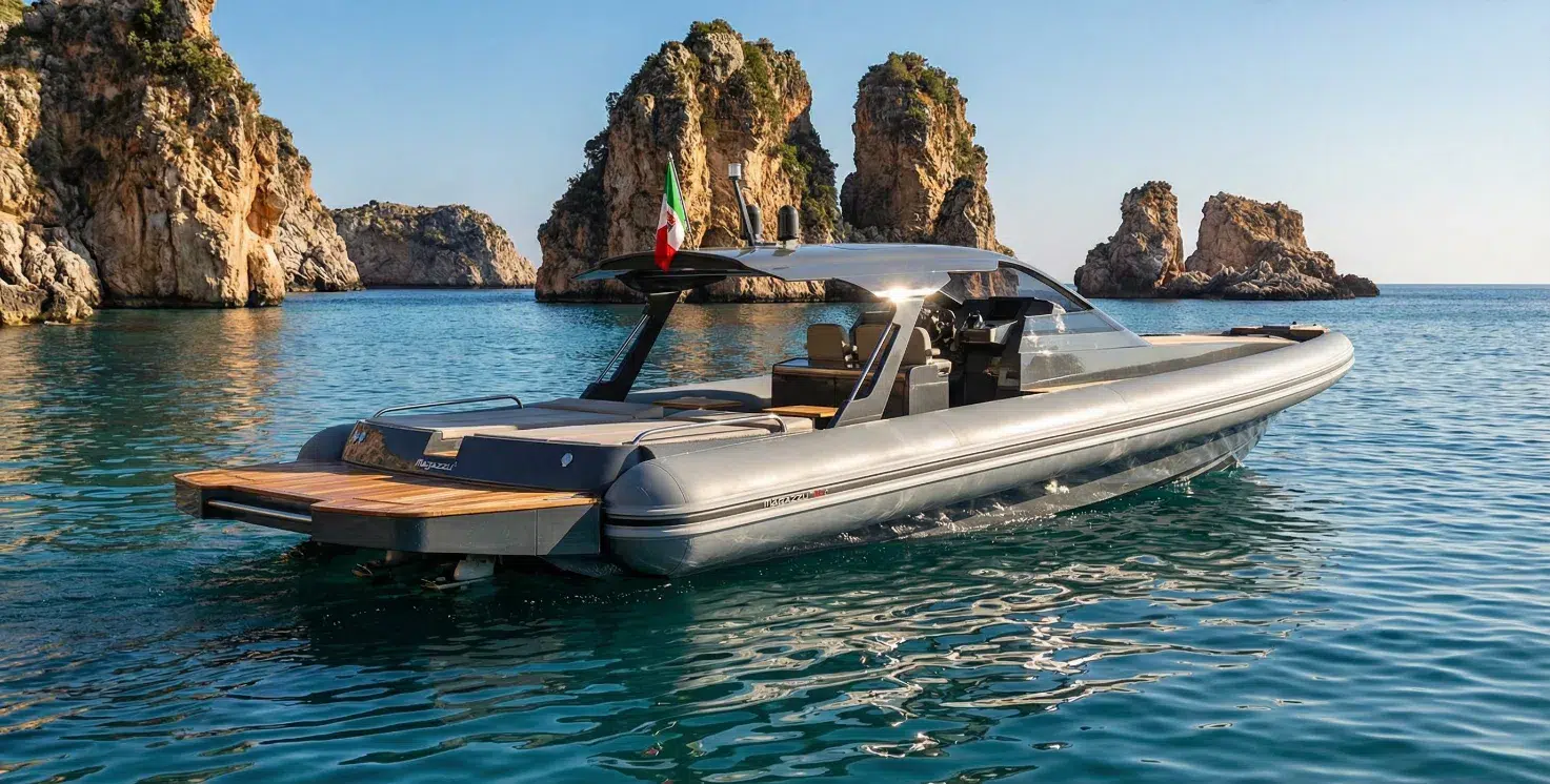 Si le MX-15 Gran Coupé est déjà un modèle raffiné à part entière, avec le MX-15 Explorer Magazzù pousse la personnalisation à des niveaux véritablement sur mesure. Ce maxi-RIB fait partie de la Signature Collection de la marque sicilienne, un véritable voyage créatif dans lequel chaque détail est conçu sur mesure pour le propriétaire, comme un vêtement de couture pour ceux qui veulent que leur bateau raconte leur propre histoire et exprime leur personnalité.