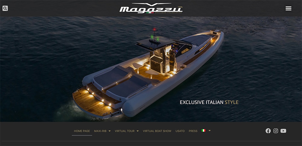 Et si dans la page d’accueil, à travers des paragraphes de présentation, 60 ans d’histoire d’une excellence nautique italienne sont racontés de manière fluide et exhaustive, les éléments du menu principal donnent accès, par un simple clic, au monde des Maxi Ribs de la marque sicilienne, à partir des modèles sportifs de la gamme MX jusqu’à la grande nouveauté du Targa 45, dernier chef-d’œuvre des frères Magazzù et précurserur de la nouvelle collection Targa.