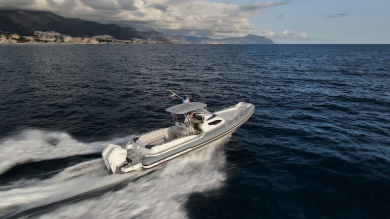 MAR-CO, le célèbre chantier basé à Muggiò, en Italie,est présent au Cannes Yachting Festival avec deux de ses bateaux pneumatiques, l’E-MOTION 36 et le R-EVOLUTION 35. Le premier est propulsé par deux Mercury 450R tandis que le second est propulsé par deux Mercury 300. Avec ses 10,70 mètres de long, le MAR-CO E-MOTION 36 se distingue par son grand espace de repas à l’arrière et sa table électrique rétractable, tandis que le R-EVOLUTION 35, le plus populaire auprès des clients, est le bateau amiral de la gamme du chantier, également apprécié pour son grand espace sur le pont, sa dinette et son bain de soleil avant.