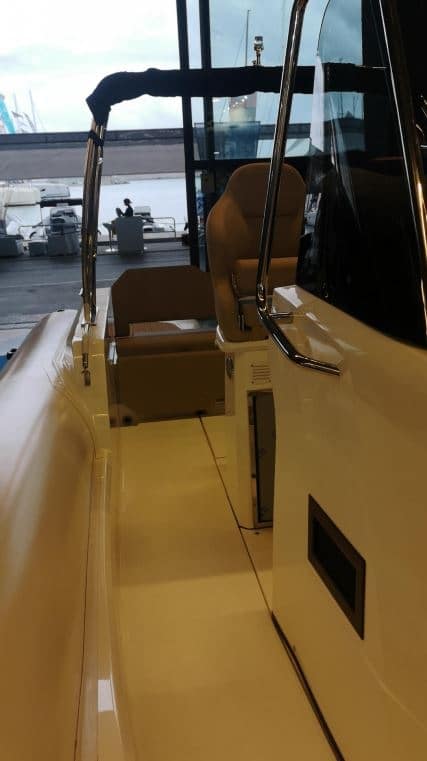 Le bateau est également équipé d’un WC chimique de 1,70 mètre, un réfrigérateur de 42 litres, un évier et une planche à découper qui deviennent naturellement des éléments essentiels pour son habitabilité, ainsi que le long auvent qui, grâce au T-Top en acier ou en fibre de verre, s’étend sur la totalité des 8,70 mètres du bateau. Personnellement, je trouve toujours cela très bien, car je me retrouve souvent à camper en famille et, au moment de la sieste de mes filles, toute cette ombre rend le repos nettement plus agréable.