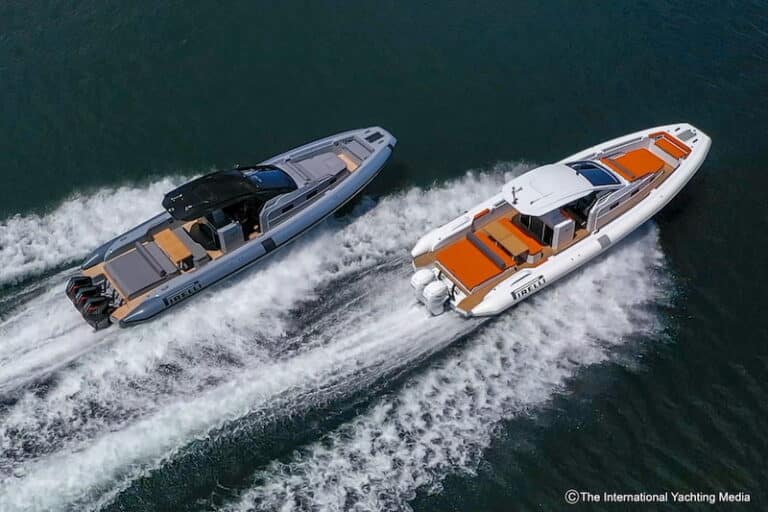 Les deux moteurs que nous avons testés rendent les deux bateaux très différents l’un de l’autre mais, malgré la différence de puissance (1350 cv contre 800), ils montrent tous deux une attitude indubitablement sportive, la caractéristique que tous les Pirelli Maxi-Rib ont en commun.