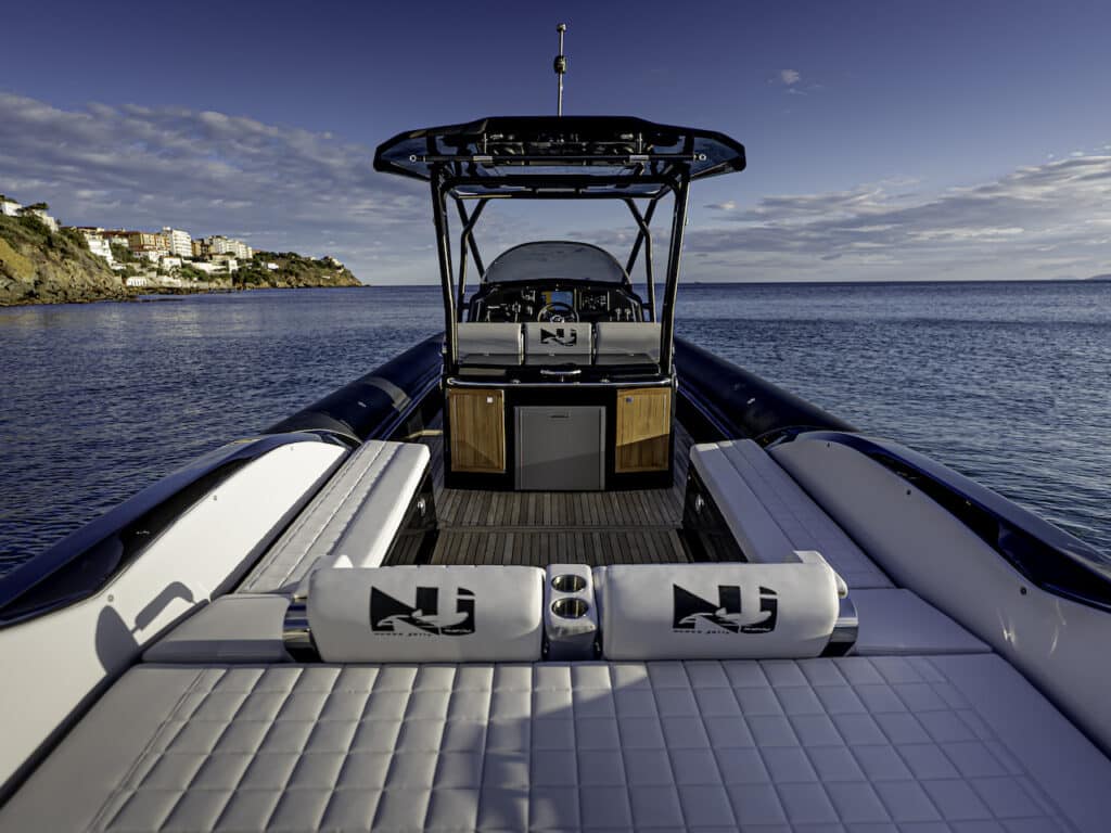 Maxi-rib ultra-sportif au look aussi magnifique qu’agressif, Prince 43 CC est le tout nouveau venu de Nuova Jolly Marine, proposé avec une propulsion hors-bord surpuissante. Avec ses deux Mercury Verado 600 V12 installés sur le support, à ce jour les plus puissants au monde, le Prince 43 CC est peut-être l’un des dériveurs les plus performants actuellement disponibles sur le marché, en plus d’offrir une large gamme de conforts (à commencer par la cabine, équipée d’une salle de bain séparée, hublot et entrée d’étrave) et une foule d’innovations intéressantes (comme la trappe à piston à gaz qui se soulève, ouvrant la console centrale comme un “coffre” à l’avant et se transformant en siège de bord de mer lorsqu’elle est fermée, ou les superstructures compactes et l’absence de pontons pour offrir une vaste zone de transit sans obstacles).