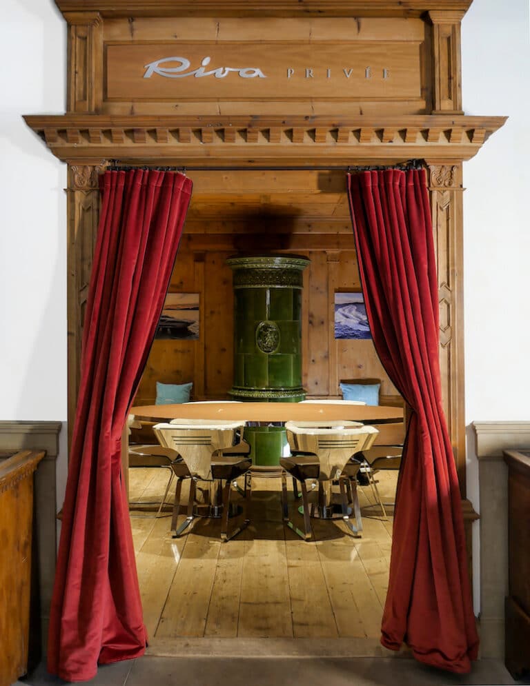 Le département marketing de l’entreprise explique que “à l’intérieur du Cristallo, la Riva Privée est un espace temporaire qui accueillera les clients dans la Stube 1872, le restaurant historique où sera servi un menu spécial Riva, créé ad hoc par le chef Marco Pinelli, allant de manière originale des saveurs de la tradition de l’Ampezzo aux suggestions de la mer“.
