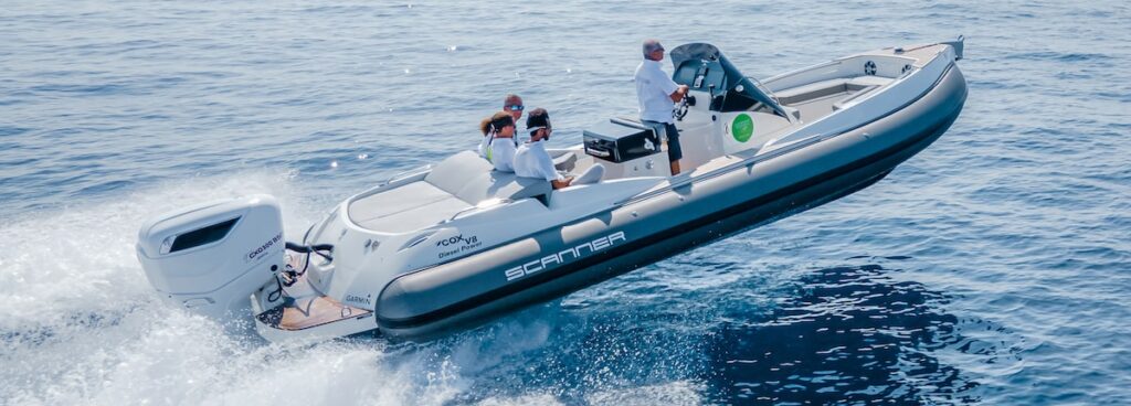 Scanner Marine s’est toujours distingué par son design. Un style unique et inimitable qui a conduit le chantier à produire des bateaux radicalement différents des standards du marché. Le Scanner Envy 860 que nous avons essayé ne fait pas exception, propulsé pour l’occasion par un Cox CXO300, le premier hors-bord diesel produit dans le monde.