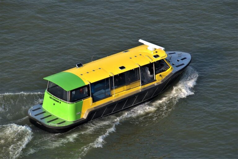 Premier d’une flotte de six taxis lancée il y a environ un an, il peut transporter jusqu’à 40 personnes et est équipé de deux moteurs électriques DriveMaster 20W de Bellmarine-Transfluid. Les taxis seront responsables de tout le transport de passagers par voie d’eau à Rotterdam et Schiedam aux Pays-Bas.